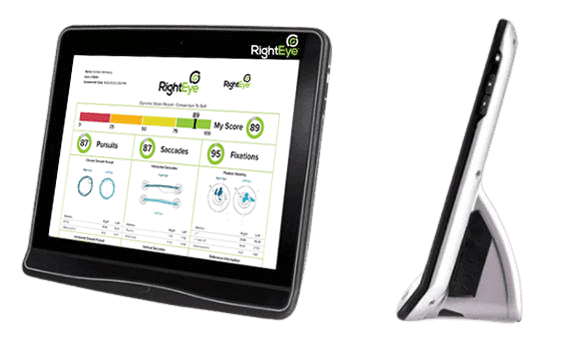 RightEye is an FDA-cleared, non-invasive, 5-minute, infrared eye-tracking test used to diagnose and assess the severity of brain injuries and concussions. It measures involuntary eye movements—such as smooth pursuits, saccades, and visual fixation—to detect abnormalities in brain-eye coordination, offering an objective, data-driven alternative to manual tests.
